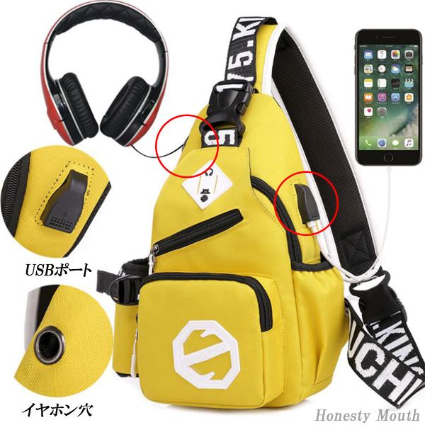 【スポーツから散歩まで】 音楽を楽しめるようにイヤホン穴が空いており、充電も可能なUSBポート付。斜めがけのボディバッグなのでリュックよりも腕の可動域が広く軽量の為、ちょっとした作業やウォーキング、釣り、簡単な登山、犬の散歩にもぴったり。サイドポケットはペットボトルや水筒を入れて固定することができます。