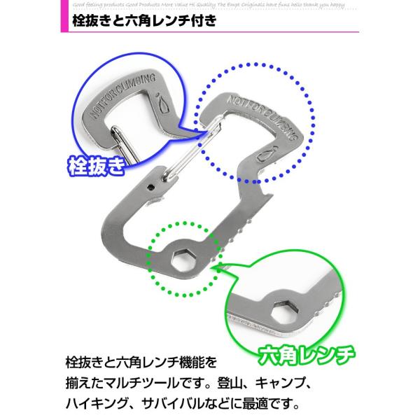 栓抜き付きカラビナサバイバルタイプ カラビナ 栓抜き サバイバルツール マルチツール アウトドア バーベキュー 登山 キャンプ ハイキング オープナー クッ