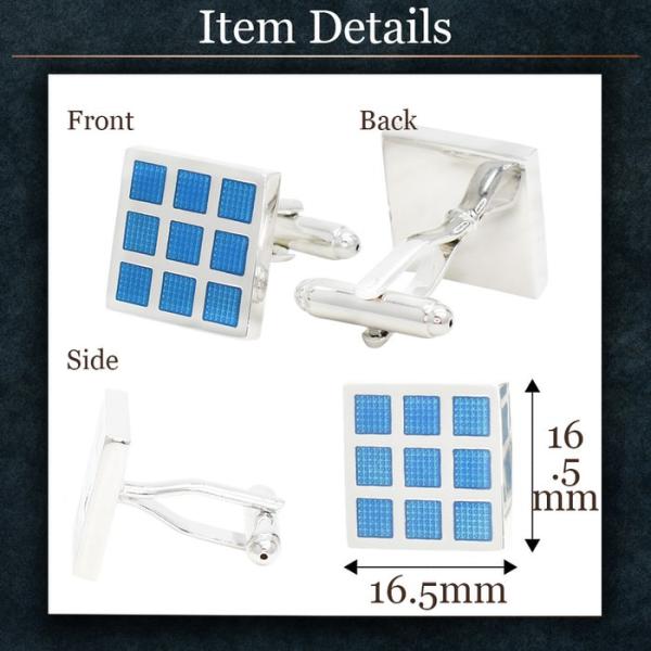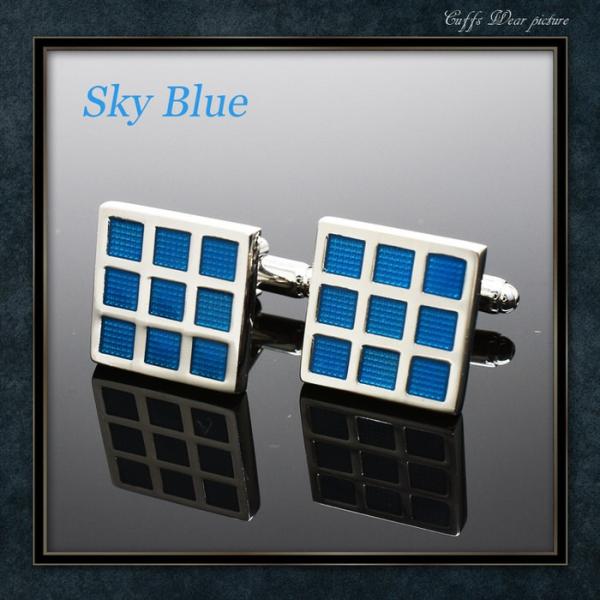 カフス スカイブルー ブロック チェック9 | / カフス カフスボタン カフリンクス カフスリンクス 四角 メンズ シャツ 結婚式 かっこいい ブルー ブロック スク