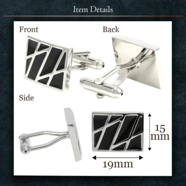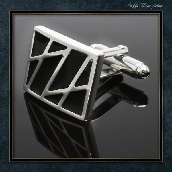 カフス スクエア シルバー カットライン ブラック | / カフス カフスボタン カフリンクス カフスリンクス 銀 黒 メンズ シャツ 結婚式 かっこいい シルバー ブ