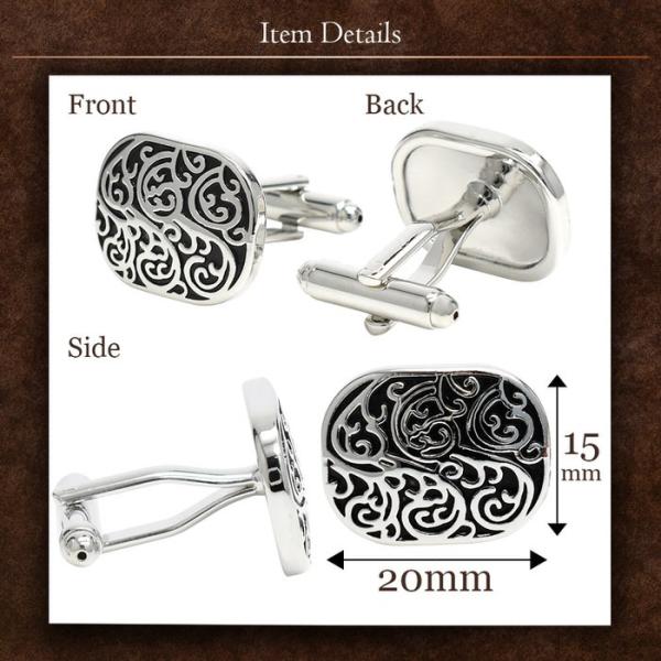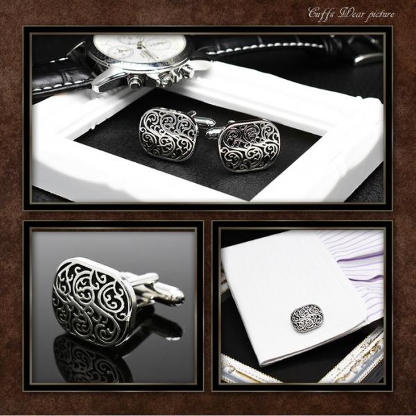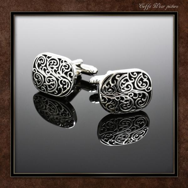 カフス ブラック シルバー柄 | / カフス カフスボタン カフリンクス カフスリンクス ブラック メンズ シャツ 結婚式 かっこいい トライバル シルバー 銀 黒 カ