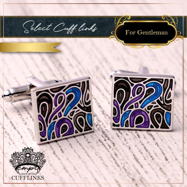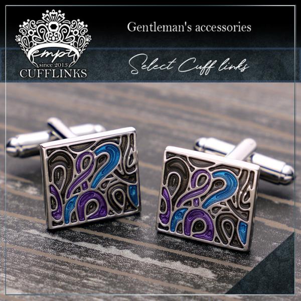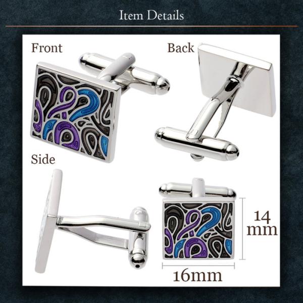 フレイムス パターン ブラック ブルー パープル カフス | カフスボタン カフリンクス カフスリンクス カフス エスニック メンズ スーツ 結婚式 オシャレ モード