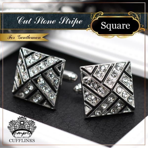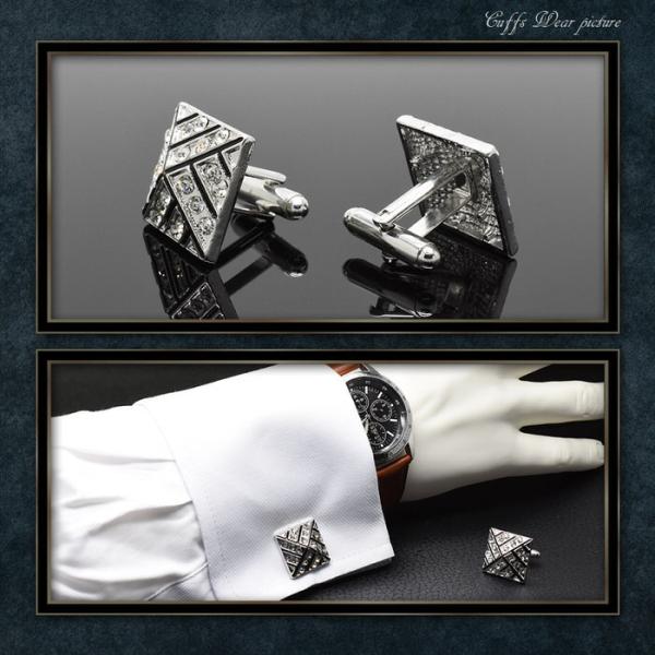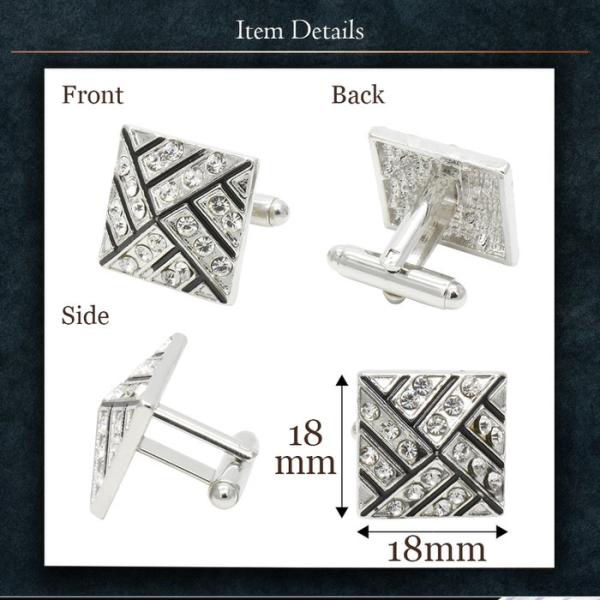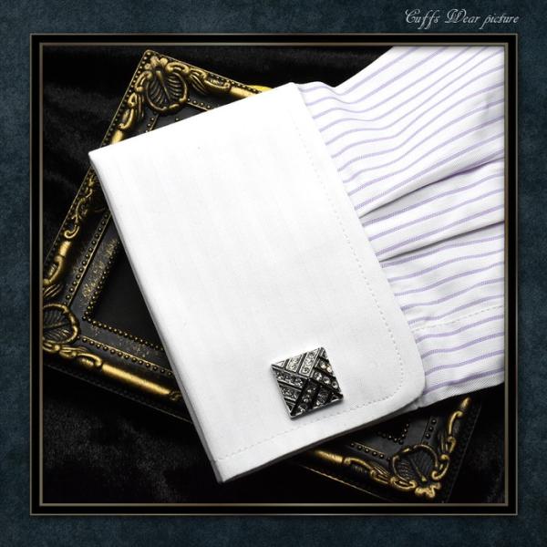 カフス スクエア 幾何学模様 ストーン カフスボタン | カフス カフスボタン カフリンクス カフスリンクス 黒 メンズ シャツ 結婚式 かっこいい シルバー ブラッ