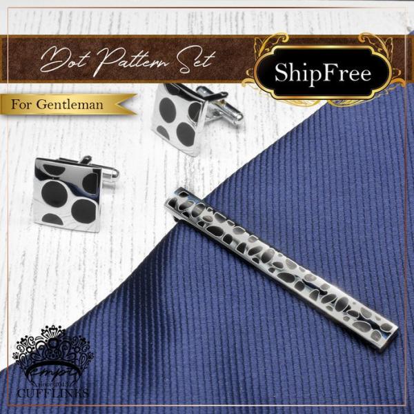 カフス タイピン セット 銀黒 ドット 模様 | カフスリンクス カフス カフスボタン カフリンクス SET メンズ シャツ 結婚式 お洒落 シルバー ブラック 目立つ ブ