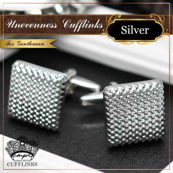 カフス スクエア シルバー 凹凸柄 カフスボタン | カフスボタン カフリンクス カフスリンクス カフス パンク メンズ シャツ 結婚式 オシャレ シルバー 銀 凸凹