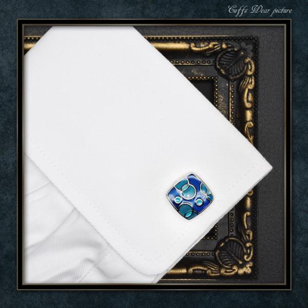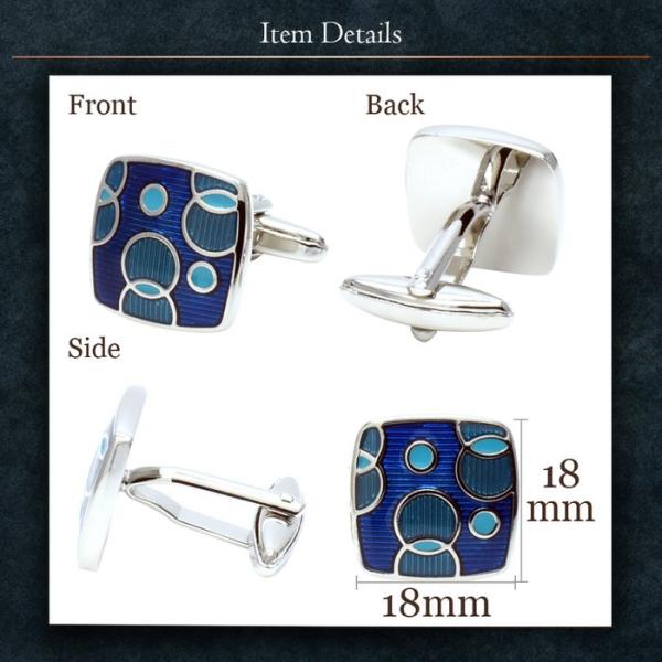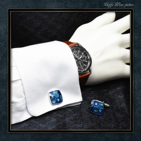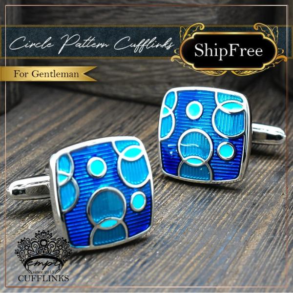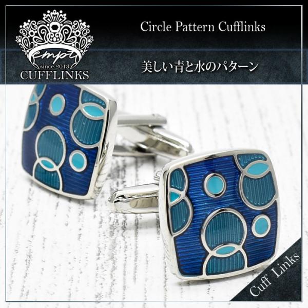 カフス サークル コンビ 模様 ブルー | カフリンクス カフスリンクス カフス カフスボタン 青 メンズ 付け方 結婚式 おしゃれ シルバー 銀 模様 ブライダル 紳士
