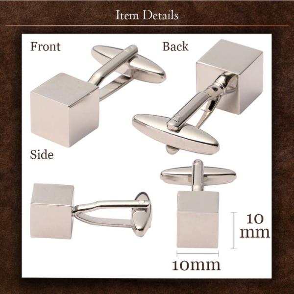 カフス ブロック シンプル シルバー | カフス カフスボタン カフリンクス カフスリンクス スクエア メンズ シャツ 結婚式 かっこいい 銀 四角 おもしろい スタ