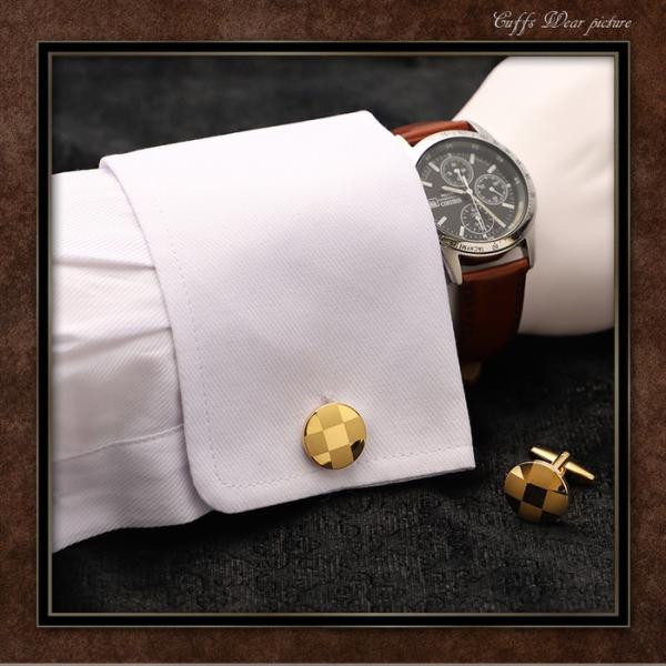 カフス サークル ブロックチェック ゴールド | カフスボタン カフリンクス カフスリンクス カフス ブロックチェック メンズ 付け方 結婚式 オシャレ 金 丸 豪華