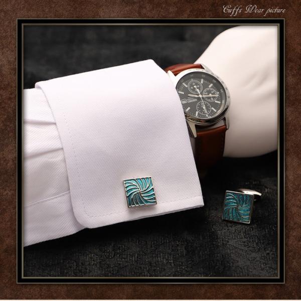 カフス スクエア スカイブルー パターン | カフス カフスボタン カフリンクス カフスリンクス スクエア メンズ シャツ 結婚式 かっこいい シルバー 銀 目立つ
