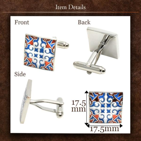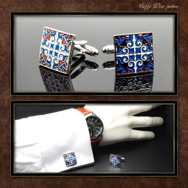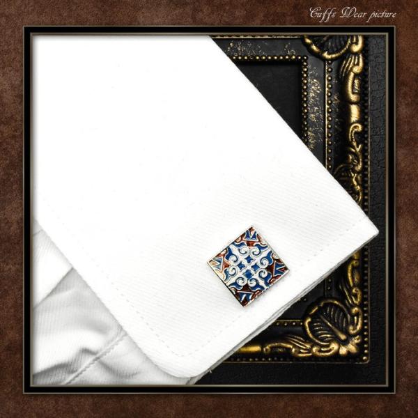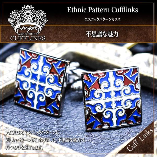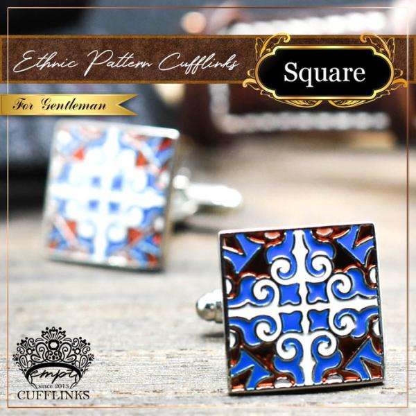 カフス スクエア ブルー エンジ エスニック柄 | カフス カフスボタン カフリンクス カフスリンクス 模様 メンズ シャツ 結婚式 かっこいい エスニック パターン