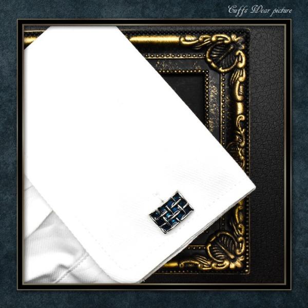 カフス スクエア 格子 ブルー | カフスボタン カフリンクス カフスリンクス カフス シルバー メンズ 付け方 結婚式 オシャレ ブルー 青 銀 ファッション 大人の