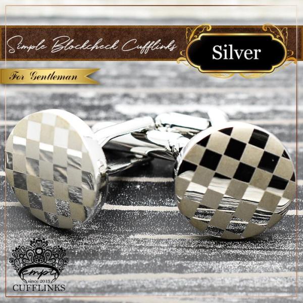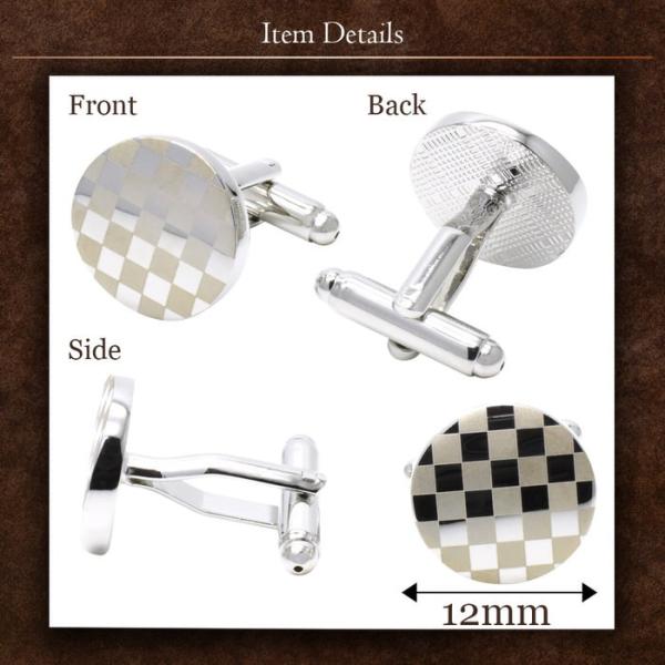 サークル ブロックチェック シルバー カフス | カフリンクス カフスリンクス カフス カフスボタン チェック メンズ 使い方 結婚式 おしゃれ ブロックチェック 丸