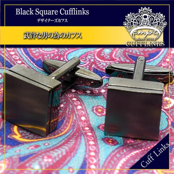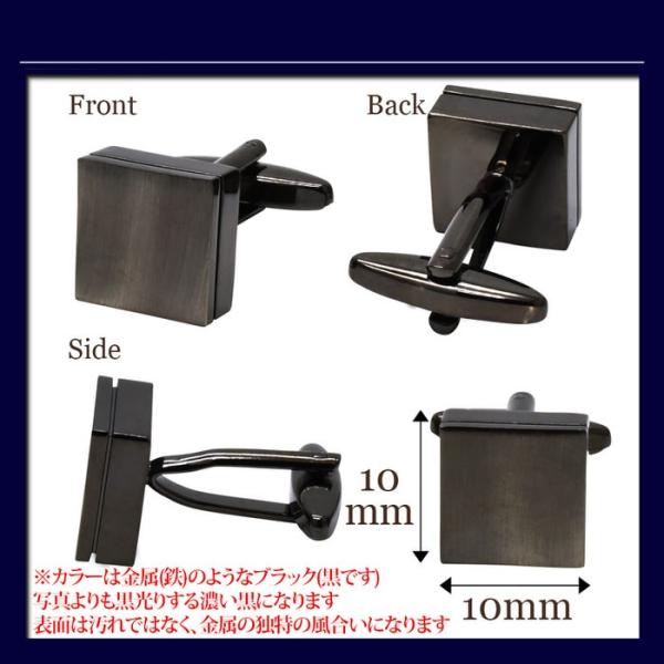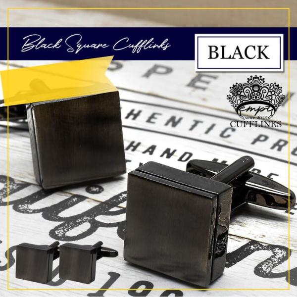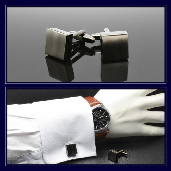 ブラック ブラッシュド スクエア カフス | カフリンクス カフスリンクス カフス カフスボタン ヘアライン メンズ 使い方 結婚式 おしゃれ ブラック 黒 金属 フォ