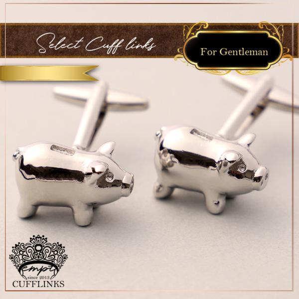 豚 ぶた ピッグ 動物 モチーフ シルバー 銀 | カフス カフスボタン カフリンクス カフスリンクス おもしろ メンズ シャツ 結婚式 かっこいい モチーフ 面白い 目