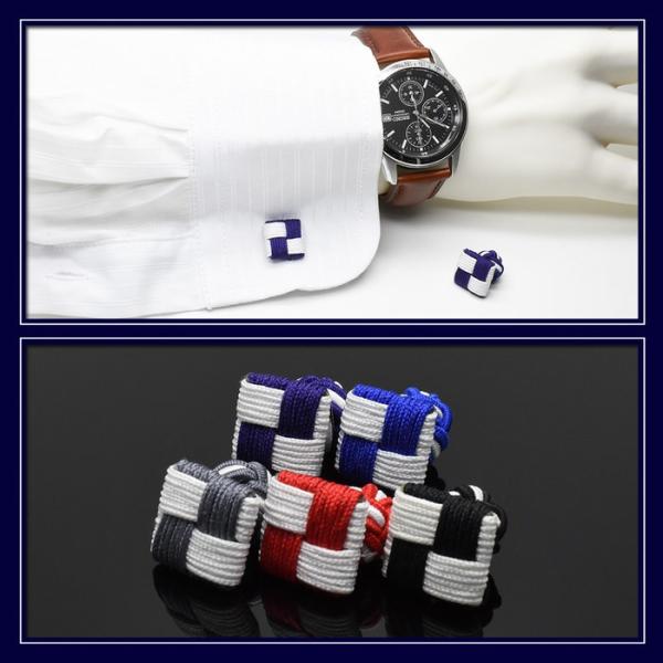 ラバーカフス ノットカフス ブロックチェック | カフスボタン カフリンクス カフスリンクス カフス ラバーカフス メンズ スーツ 結婚式 紐カフス ひもカフス ゴ