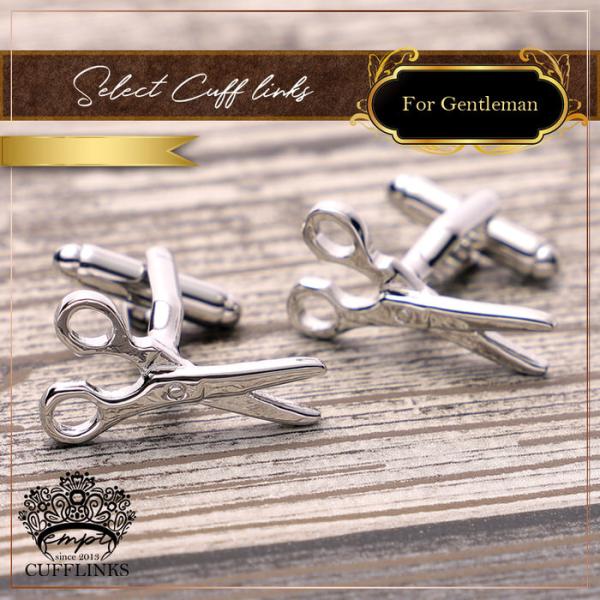 ハサミ はさみ 道具 カフス シルバー 銀 | カフスリンクス カフス カフスボタン カフリンクス めずらしい メンズ シャツ 結婚式 お洒落 美容師 工作 美術 ブラ
