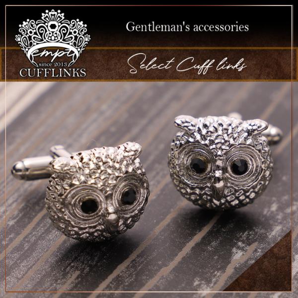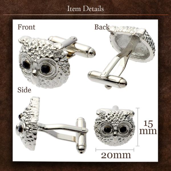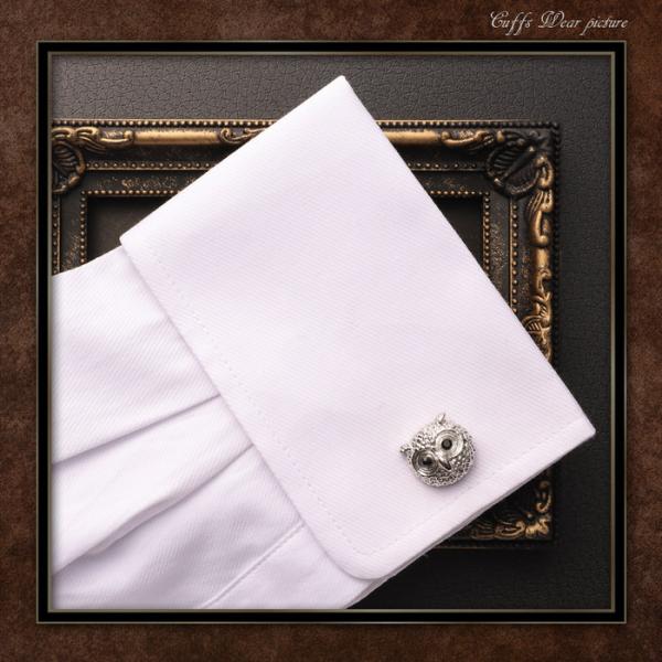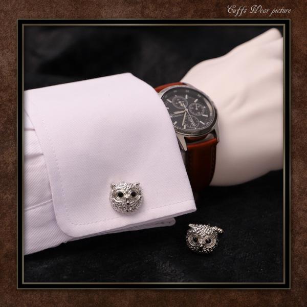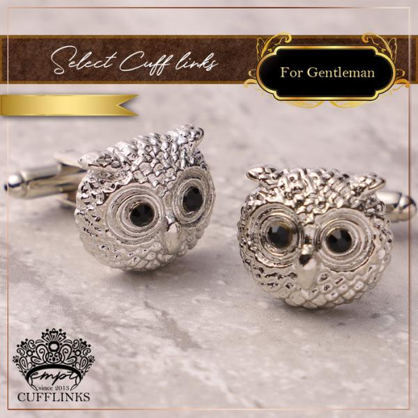 ふくろう 梟 動物 モチーフ カフス シルバー 銀 | カフリンクス カフスリンクス カフス カフスボタン 古着 メンズ 付け方 結婚式 おしゃれ 縁起 モード かっこ