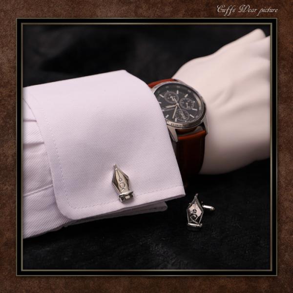 万年筆 ペン カフス シルバー 銀 | カフスリンクス カフス カフスボタン カフリンクス 事務職 メンズ 使い方 結婚式 お洒落 文房具 仕事 趣味 カジュアル 紳士