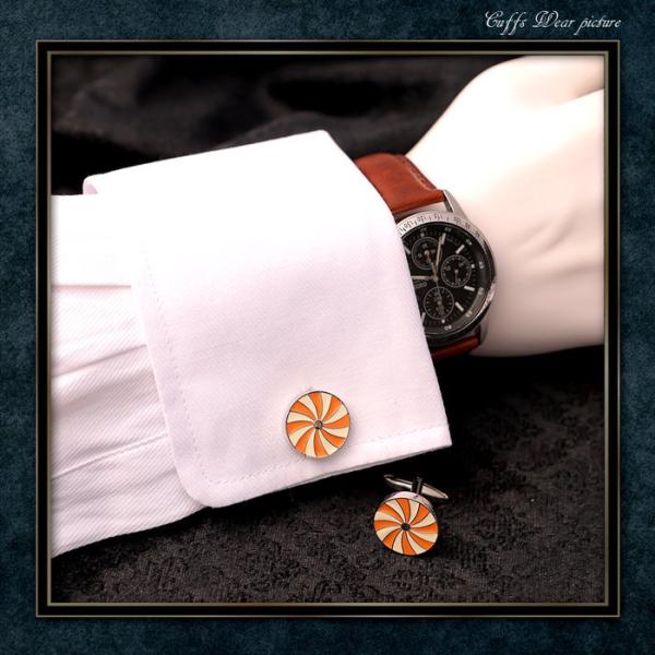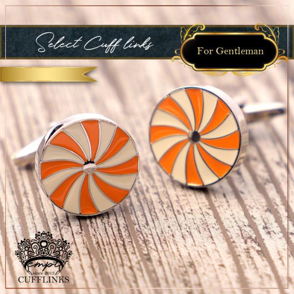 カフス サークル 丸 模様 車輪 オレンジ 橙 シルバー 銀 カフス カフスボタン カフリンクス カフスリンクス かっこいい メンズ シャツ 結婚式 かっこいい 豪華