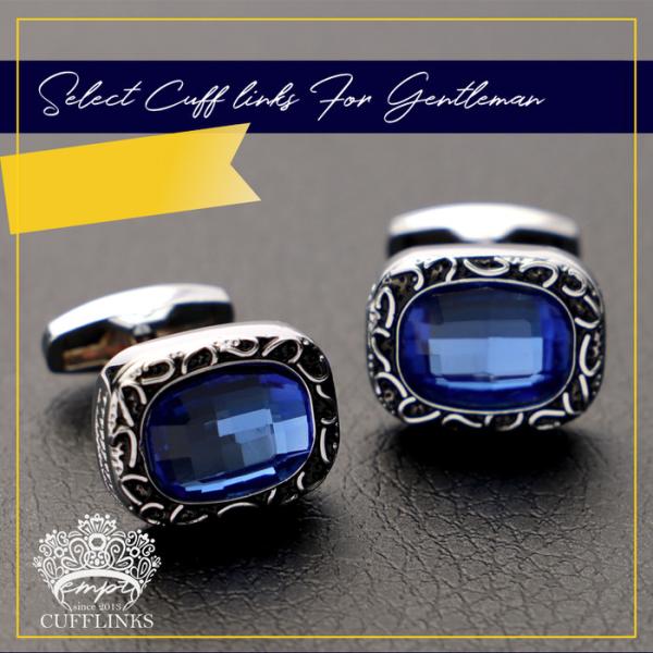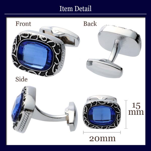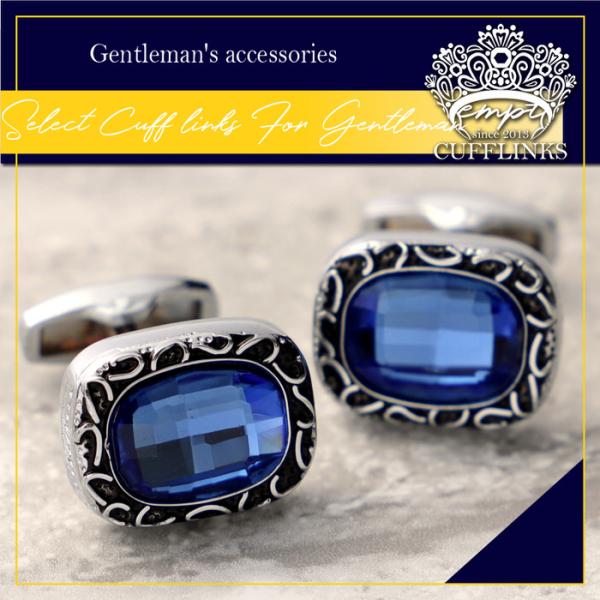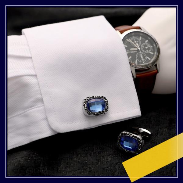 ゴージャス カフス カットストーン ブルー 青 | カフリンクス カフスリンクス カフス カフスボタン 目立つ メンズ 使い方 結婚式 おしゃれ 華やか アクセサリー