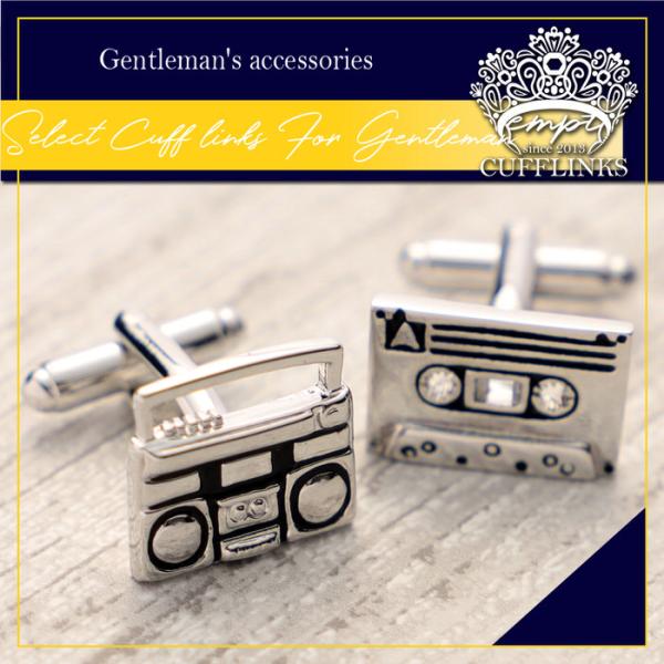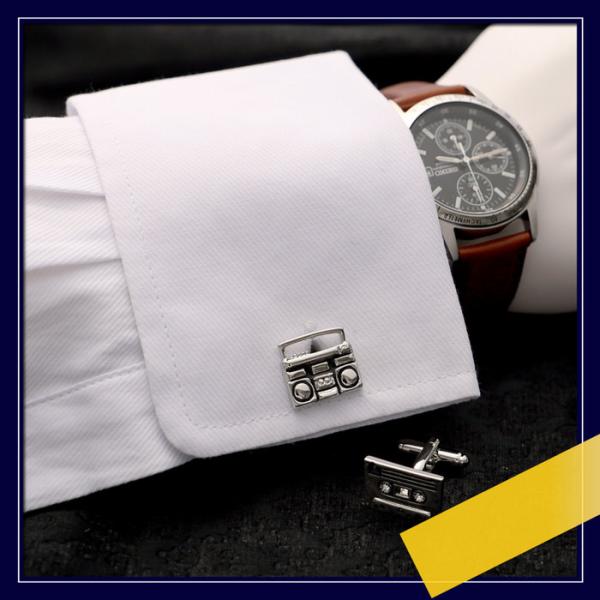 カセットテープ カセットデッキ 音楽 機械 モチーフ カフス シルバー 銀 | カフリンクス カフスリンクス カフス カフスボタン 90年代 メンズ 使い方 結婚式 お