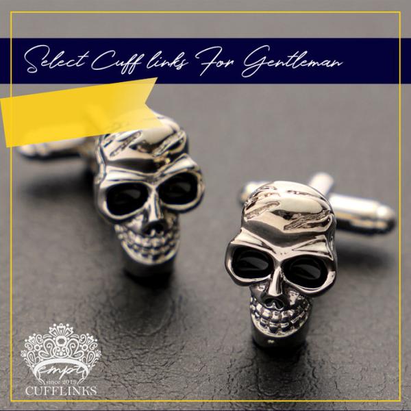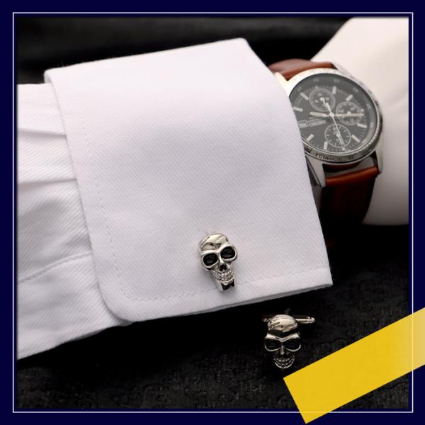 ドクロ スカル 骸骨 どくろ カフス シルバー 銀 ブラック 黒 | カフリンクス カフスリンクス カフス カフスボタン ゴシック メンズ 使い方 結婚式 おしゃれ ロ