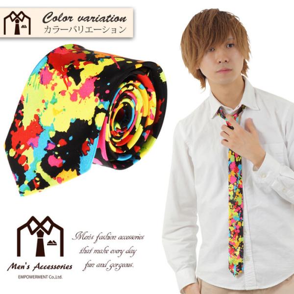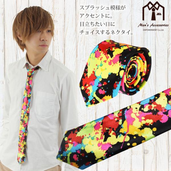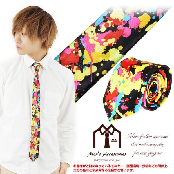 ネクタイ ナロー スプラッシュ カラフル 黒 | ナロータイ ペンキ 黒 目立つ フォーマル 衣装 制服 父の日 結婚式 おもしろ かっこいい メンズ ギフト プレゼント