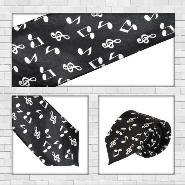 ネクタイ 音楽 音符 楽譜 黒 ブラック 白 ホワイト | タイ ミュージック 趣味 ステージ 演奏会 ビジネスマン 紳士 スーツ プレゼント 発表会 ライブ 衣装 父の