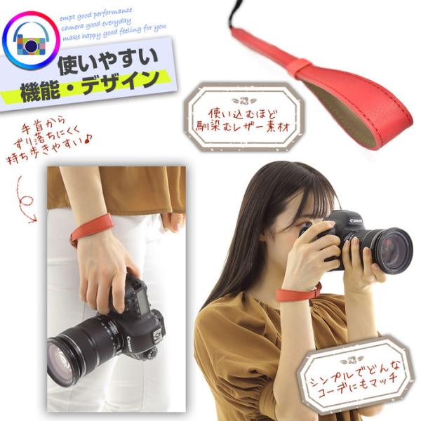 カメラストラップ レザー ハンドストラップ 革 | カメラ ストラップ 一眼レフ コンデジ ミラーレス お洒落 シンプル デザイン デジカメ かっこいい かわいい お