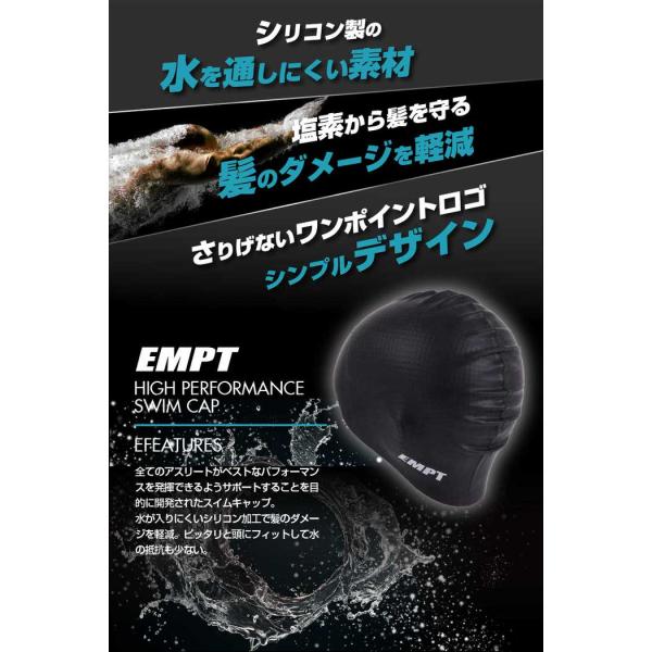 EMPT水泳キャップブラック2(裏側凸ありタイプ) ベーシックなシリコン製水泳キャップ / 水泳キャップ 水泳帽 シリコンキャップ スイムキャップ シリコン