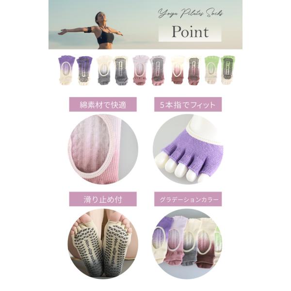 ヨガソックスグラデーション1 | ピラティスソックス ソックス 靴下 滑り止め ヨガ靴下 5本指 5本指ソックス 浅履き ヨガ用靴下 おしゃれ かわいい かかとあり 五