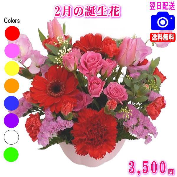 花 ギフト 誕生日 1月の誕生花カラフルアレンジ3,500円 送料無料 翌日配達 あすつく対応