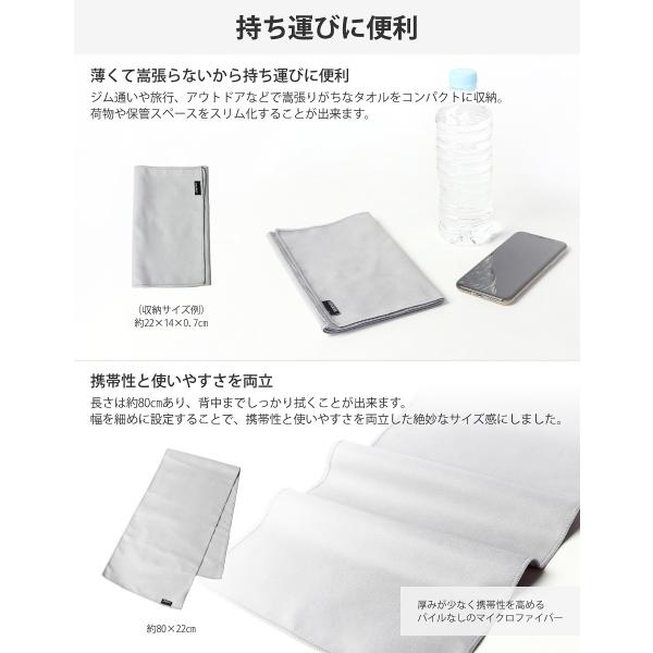 長めなので、首にかけやすく、背中までしっかりと拭くことが可能。