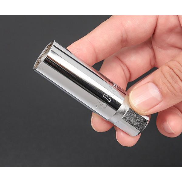 ソケット内部に組み込まれたクリップでスパークプラグを保持します。