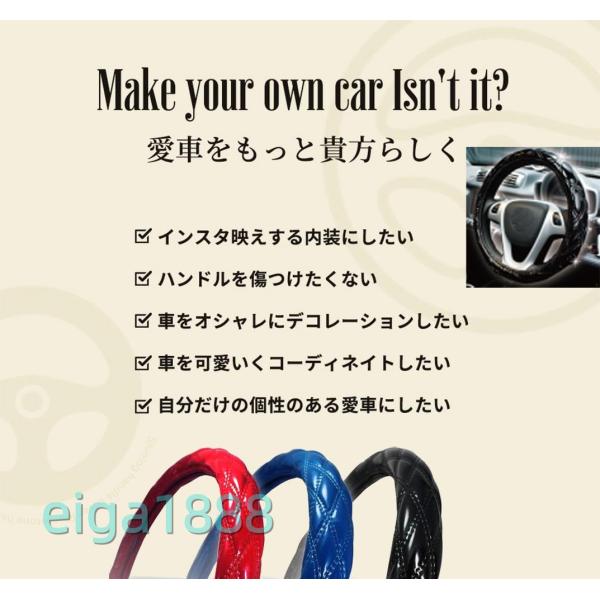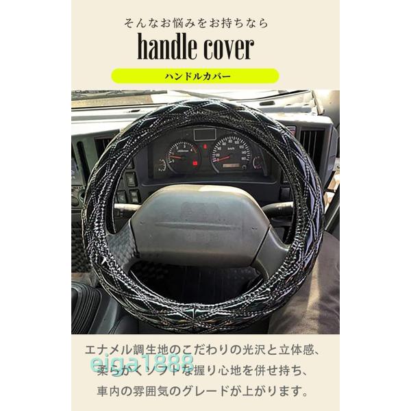 【高級感設計】スタイリッシュな外観と優れた職人技があなたの車をより豪華にします。エナメル調生地のこだわりの光沢と立体感、柔らかくソフトな握り心地を併せ持ち、車内の雰囲気のグレードが上がります。手触りがよし、耐久性に優れ、滑り止め機能も付いています、操作感が上等。真冬の冷たいハンドル、真夏の熱いハンドルでも安心して握れ、ハンドルが太くなることにより運転も楽になります。