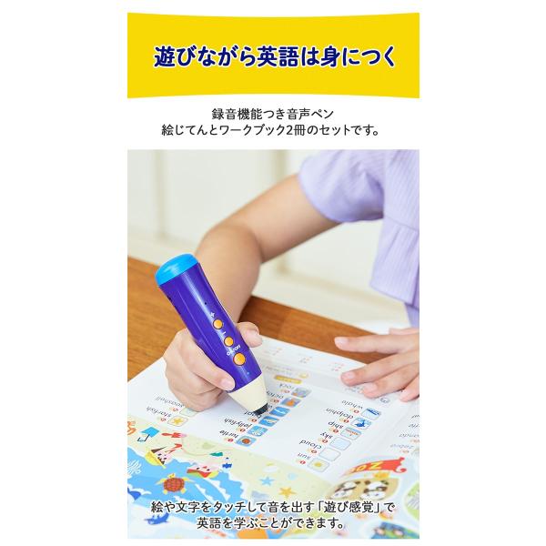 アルファベットの書き方が学べるワークブックも付属。ワークブックの英単語にも音声ペンは対応し、書き方や綴りを学びながら、同時に発音を習得することが可能です。