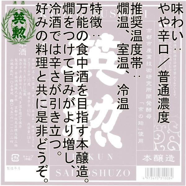 英勲 本醸造 京の珀 1.8L 京都 伏見 齊藤酒造 日本酒