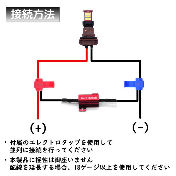 LEDに交換したバルブ1球に対し必ず1個使用して下さい(フロント左右2球交換の場合は2個)
