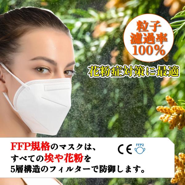 N95マスク同等 FFP2マスク 100枚セット 最強の花粉症対策マスク FFP2の刻印あり 不織布 EU圏 医療用 高性能5層マスク 肌に優しいマスク KN95タイプ