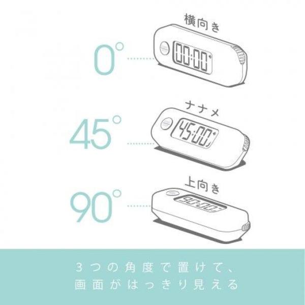 3つの角度で置けるから、机のどこに置いても見やすい角度で時間表示がはっきり見える。