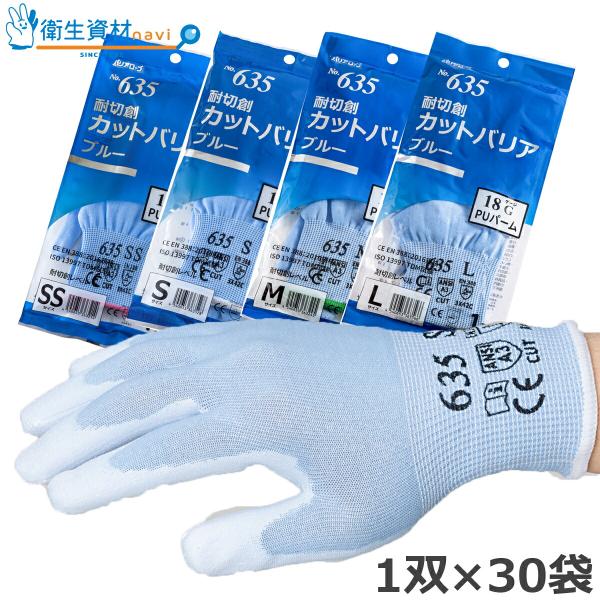 1枚293円(1双587円)/No.635 耐切創 レベルC カットバリア ブルー PUコート(30双(60枚))