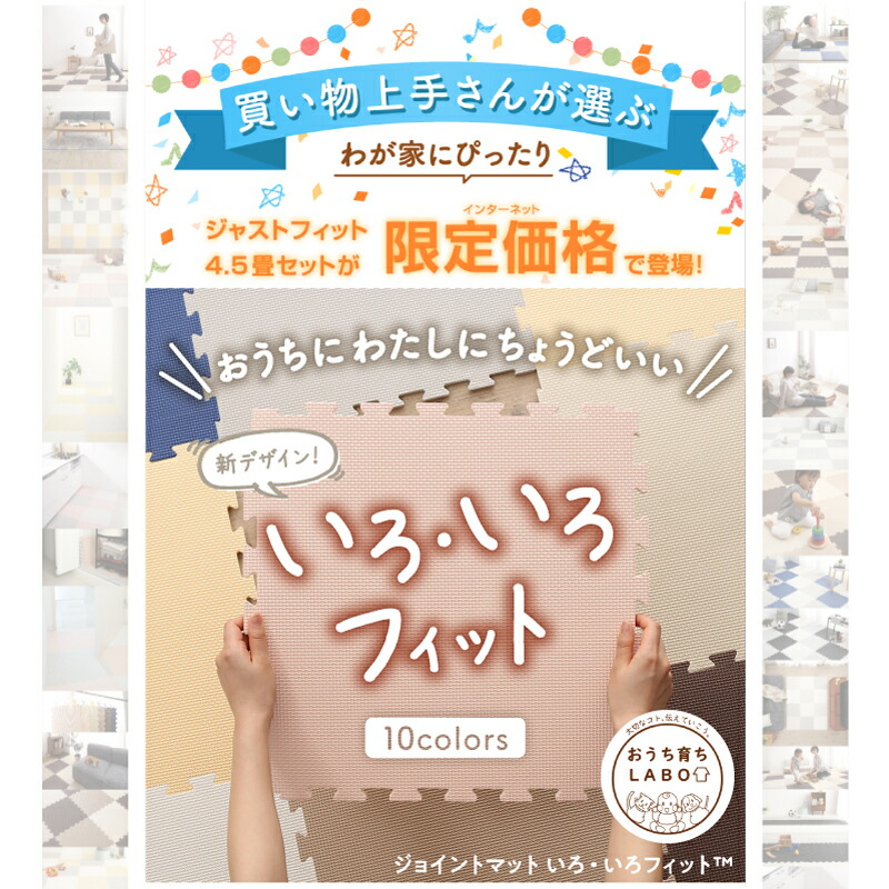 ジョイントマット ジョイント マット カーペット ラグ 大判 ノンホルム 抗菌 防臭 防音 床暖房対応 おしゃれ 洗える ベビー 45cm角 10mm厚 48枚 6畳