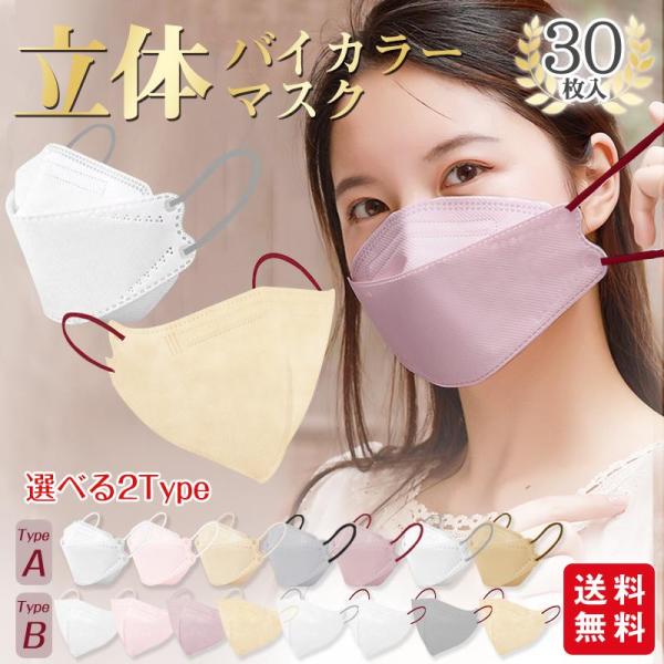 小顔3Dマスク バイカラー 立体マスク 30枚入 おしゃれ パステルカラー くすみカラー 爆買