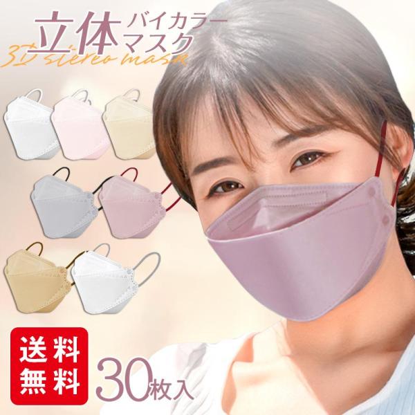 小顔3Dマスク バイカラー 立体マスク 30枚入 おしゃれ パステルカラー くすみカラー 爆買