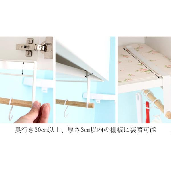 対応サイズ 奥行き30cm以上、厚さ3cm以内の棚板に装着可能