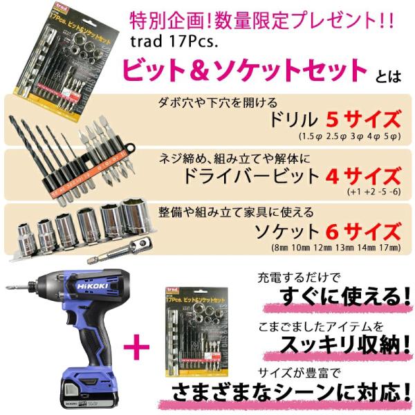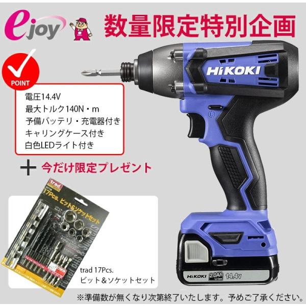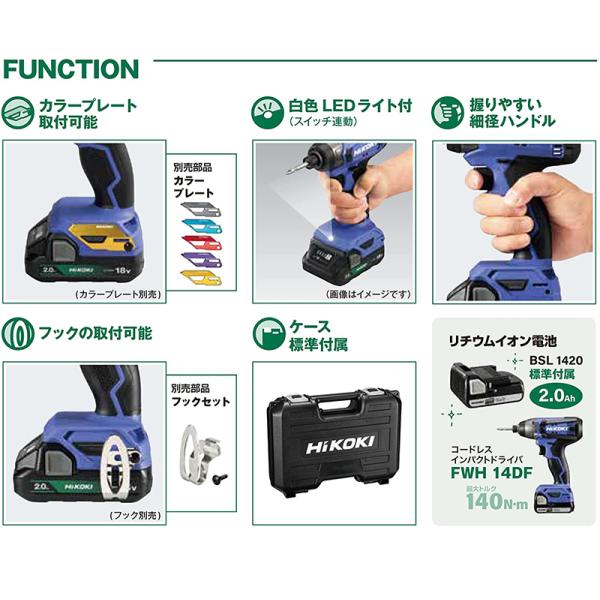期間限定おまけ付き 17Pcsビット&ソケットセットプレゼント HiKOKI ハイコーキ 14.4V コードレス インパクトドライバ 2.0Ah FWH14DF(2BG)【GS】