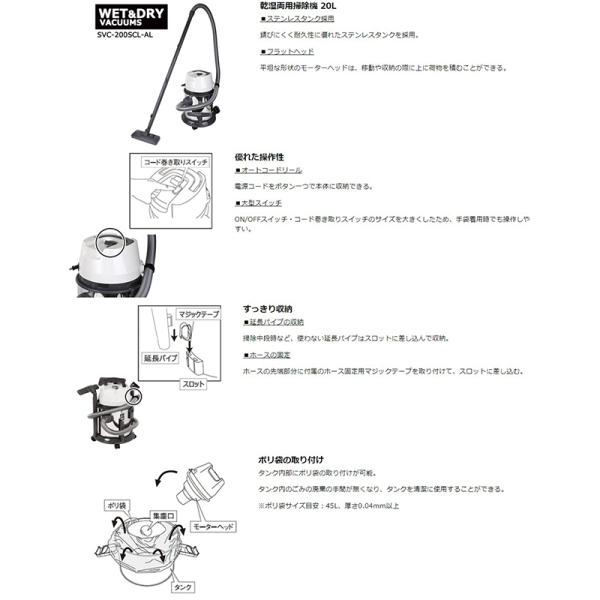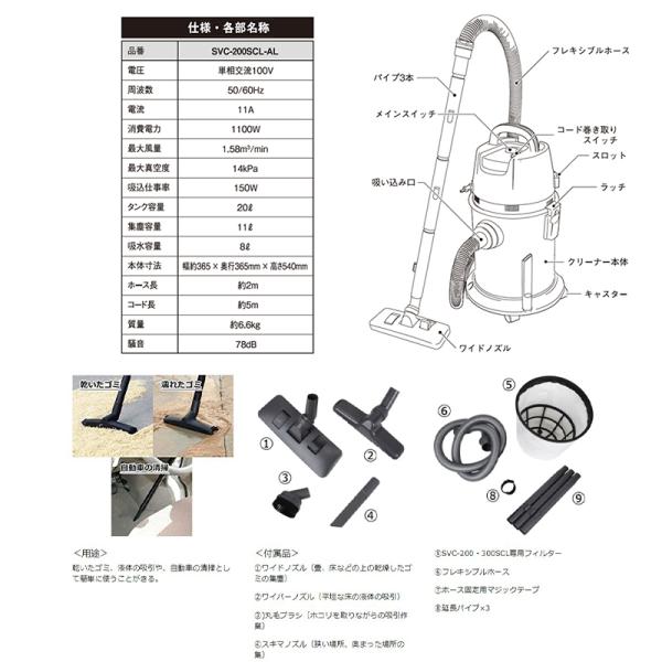 SK11 乾湿両用掃除機 20L SVC-200SCL-AL 送料無料 4977292489744 【GS】
