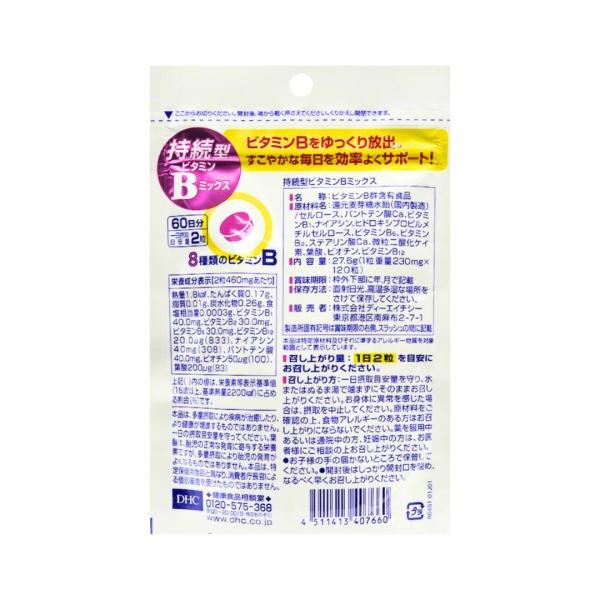 【3袋セット】DHC 持続型ビタミンBミックス60日分 栄養機能食品 タブレット 1日2錠 必須 ビタミンB群全8種 美容 赤血球 ゆっくり溶ける 妊活送料無料