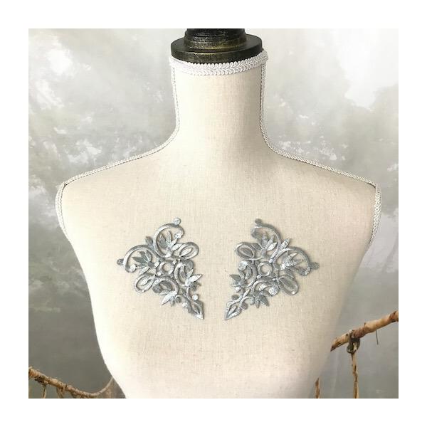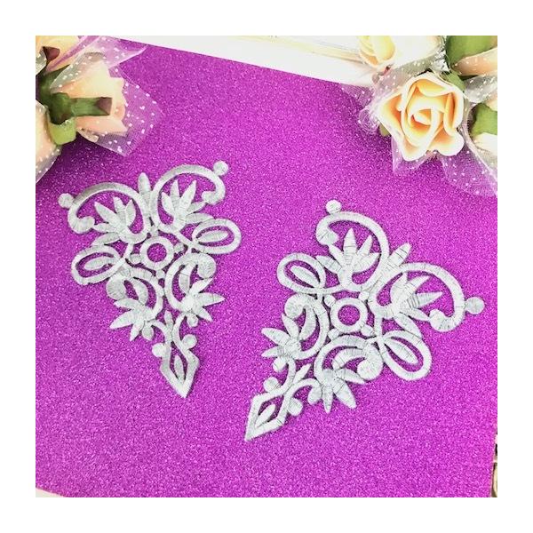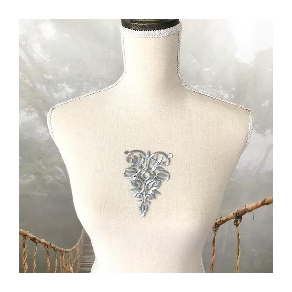 アイロン接着できるシルバーの刺繍ワッペンモチーフです。