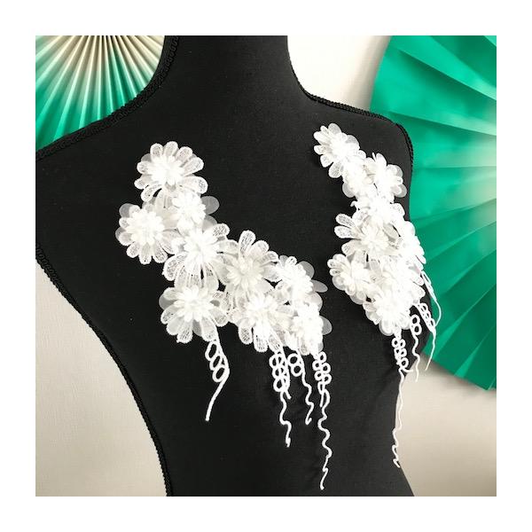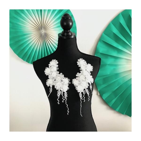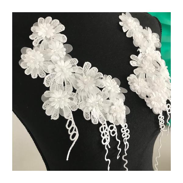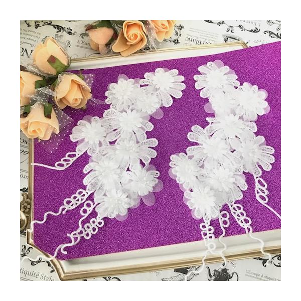 新体操 ベリーダンス 社交ダンス 衣装作り レースモチーフ モチーフ 白 3D お花 ビーズ付き ペアセット モチーフ 手作り刺繍 ペアセット ハンドメイド パーツ